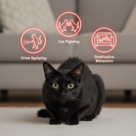 When your cat pees outside their litter box, damages your belongings, or engages in aggressive conflicts, they're typically dealing with overwhelming stress levels.